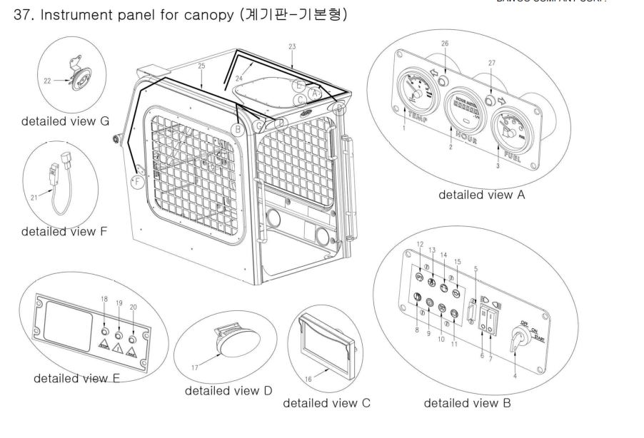 Приборная панель RH для ограждения кабины