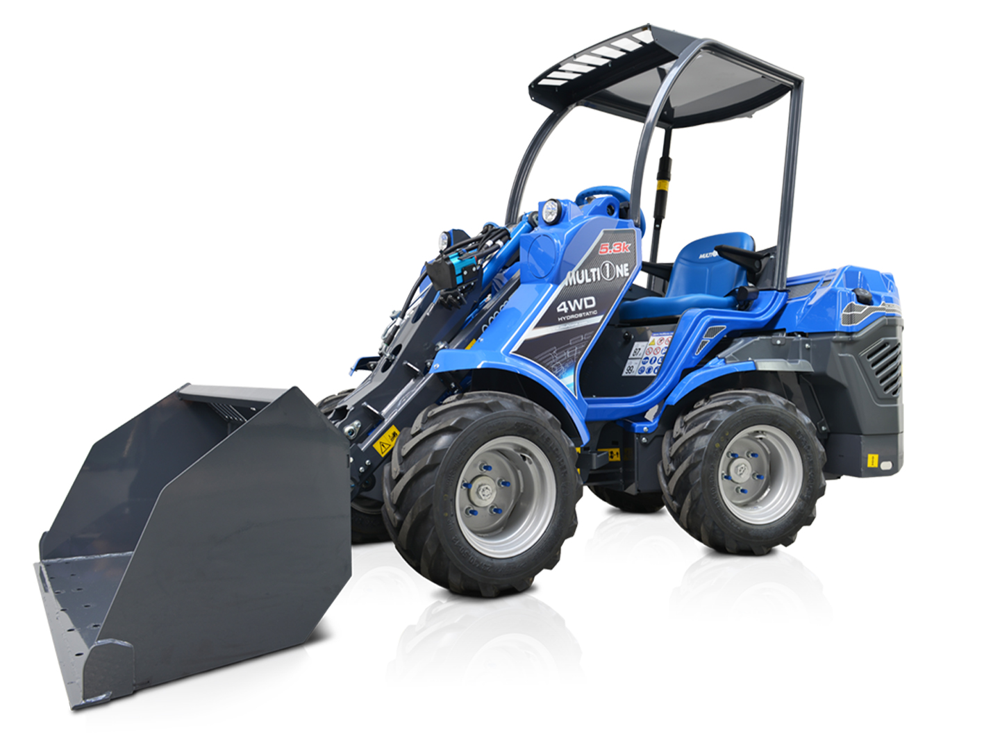 В модели 5.3К используется 12-функциональный джойстик, что означает максимально комфортное управление всеми механизмами минипогрузчика одной рукой. Рабочая грузоподъемность этой модели — 900 кг, что легко сопоставимо с наиболее популярными моделями минипогрузчиков с бортовым поворотом, а ее масса намного меньше этих конкурентов — всего 1050 кг, что позволяет использовать модели 5 серии MultiOne при работе с ландшафтами и не повреждать травяной покров.