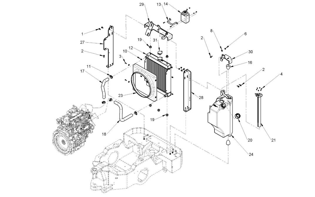 Топливный бак и охладитель двигателя
