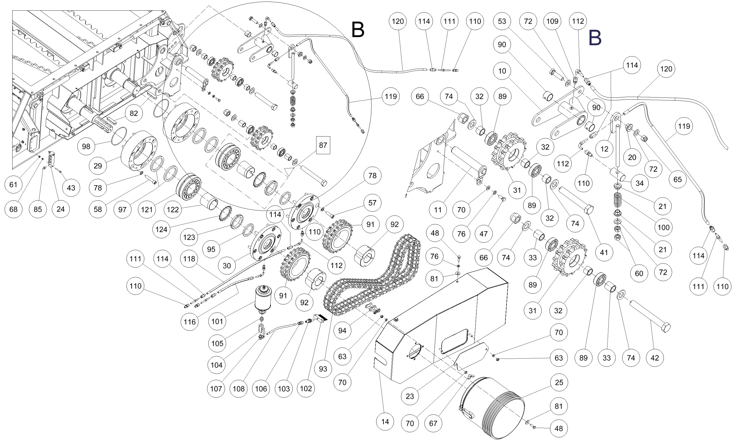 Туннель, упаковка в мешки, цепь, натяжитель