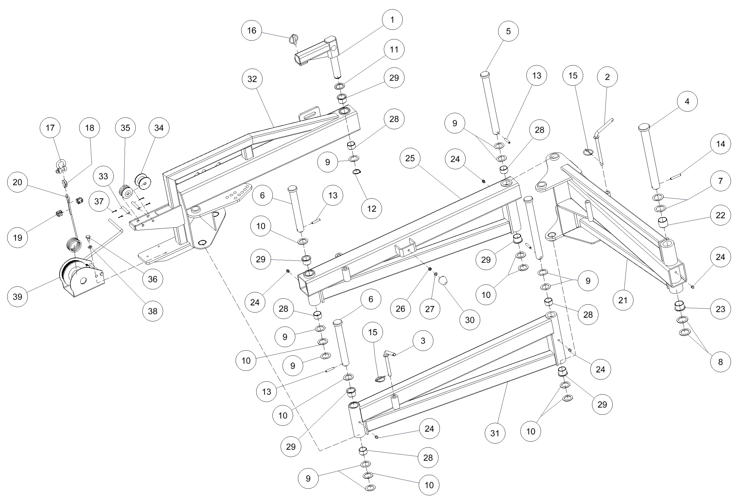 Открывающий рычаг, закрывающий рычаг, механизм защелки